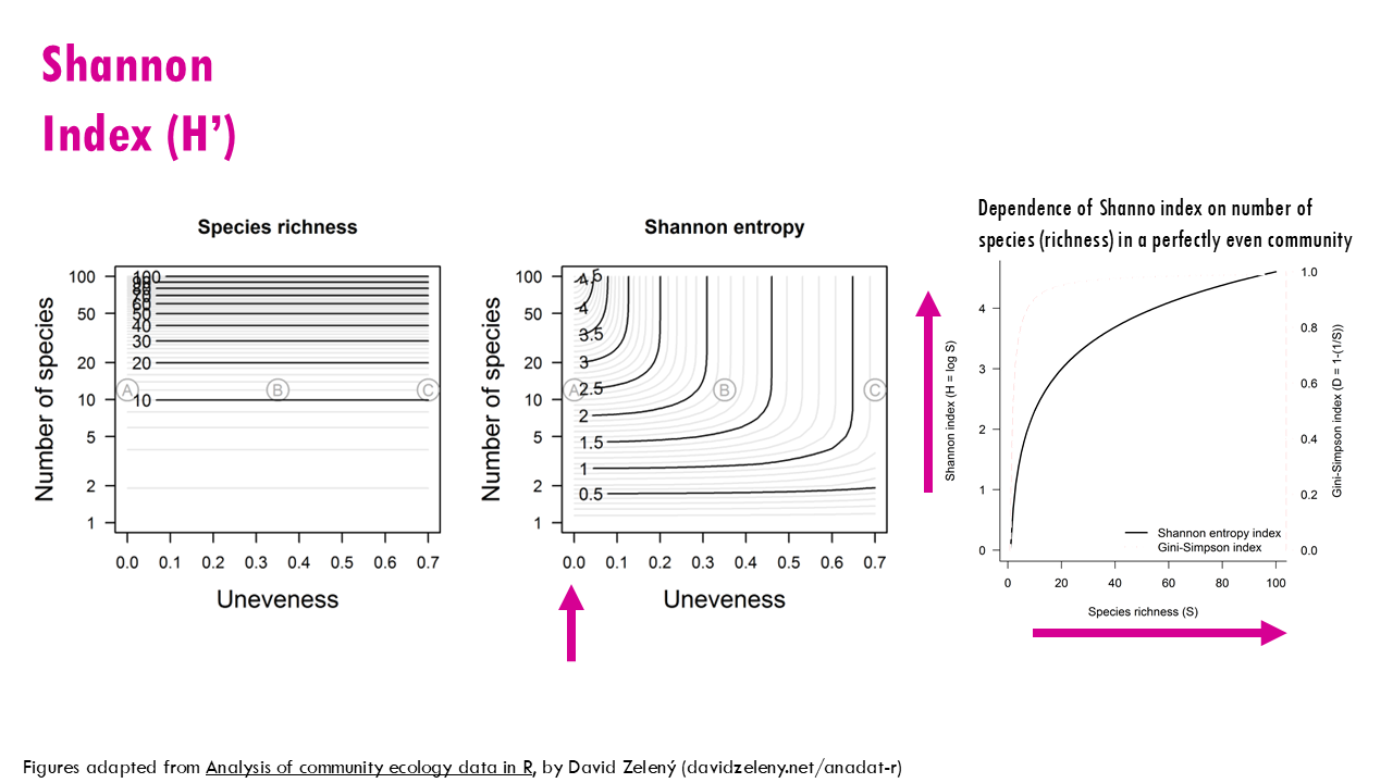 - And if we want some sort of balance between evenness and richness, we would go with the Shannon index.