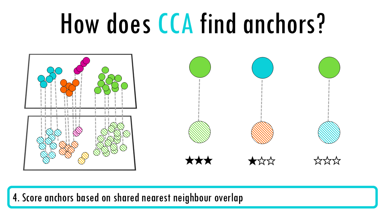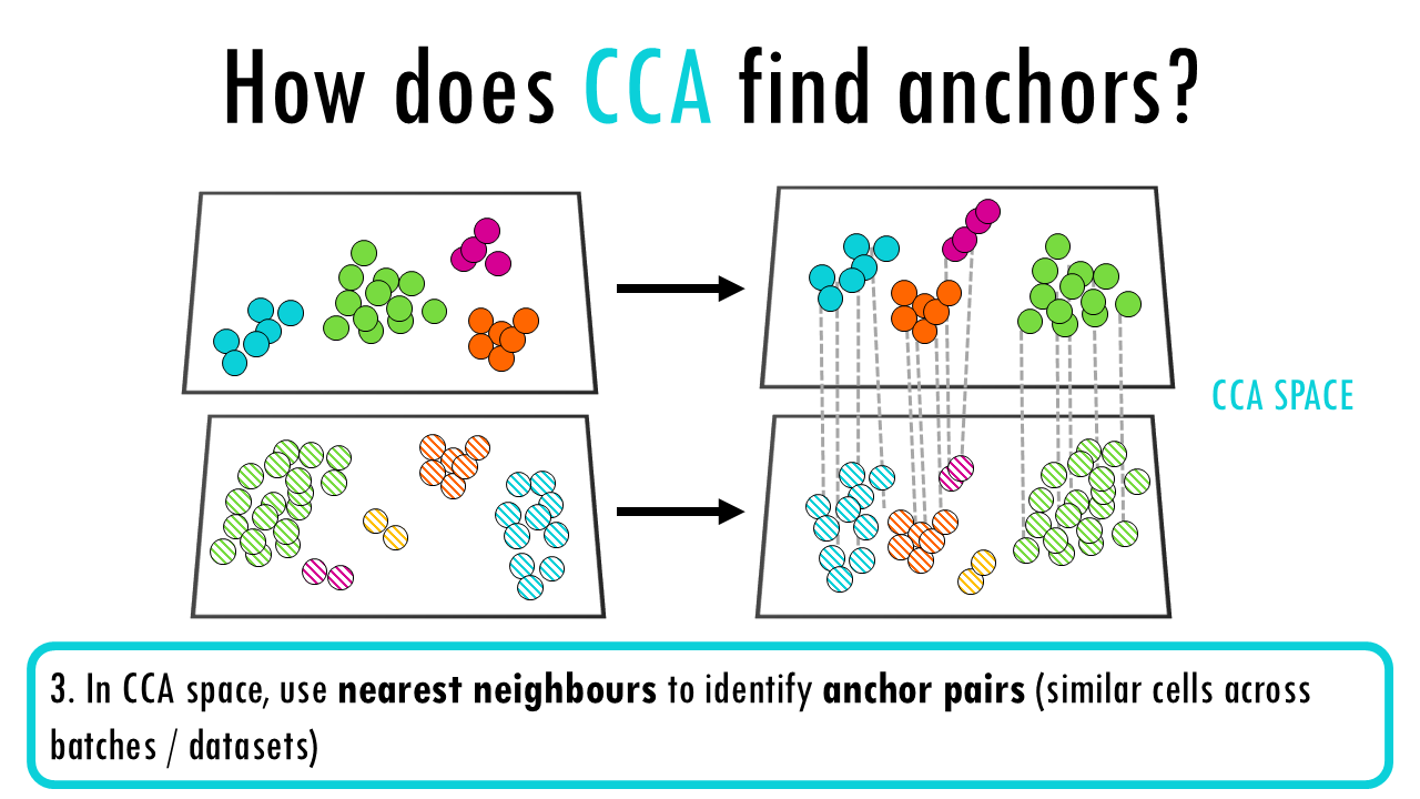 - In CCA space, use nearest neighbours to identify anchor pairs (similar cells across batches)
