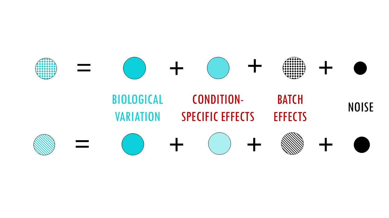 For example, if your research question is: “How does gene expression change between morning and evening?” then time of day is a condition (the biological contrast you care about). If your research question is: “How do diseased vs. healthy samples differ?” then time of day becomes a batch effect if morning samples are all healthy and evening samples are all diseased—because time of day is not biologically relevant to the question but can introduce unwanted variation.